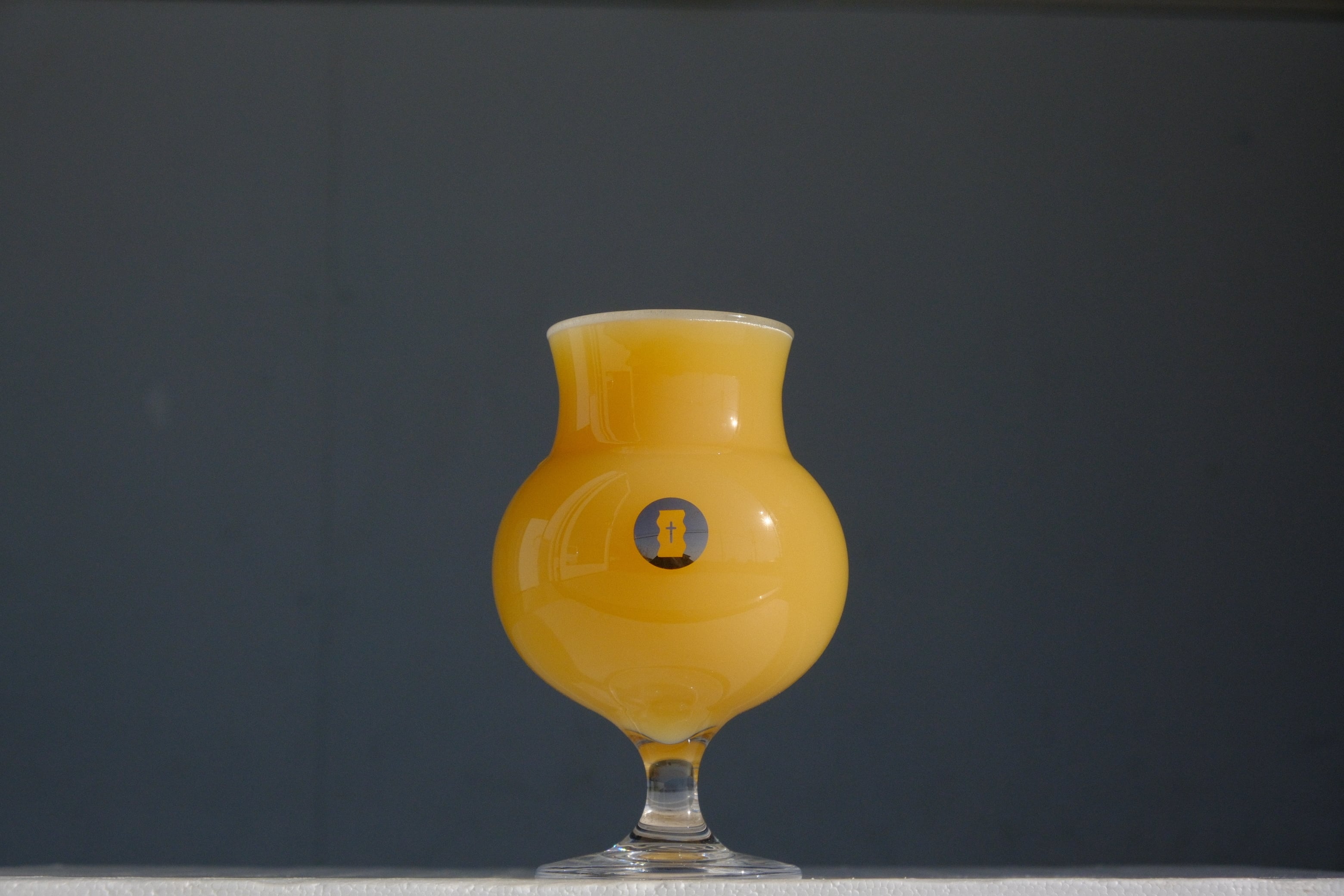 A deep haze and dense body reveal fresh white grape and soft white peach aromas, touched by subtle dank notes and balanced hop character.